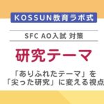 KOSSUN教育ラボでは、慶應義塾大学SFC(湘南藤沢キャンパス)の総合型選抜(AO入試)に特化した対策を行っています。受験でお困りの方は、お気軽に無料個別相談会にお申し込みください。