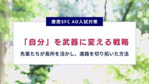 KOSSUN教育ラボは、慶應義塾大学SFC(湘南藤沢キャンパス)の総合型選抜(AO入試)に特化した対策を行っています。受験でお困りの方は、お気軽に無料個別相談会にお申し込みください。