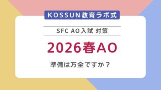 KOSSUN教育ラボは、慶應義塾大学SFC(湘南藤沢キャンパス)の総合型選抜(AO入試)に特化した対策を行っています。受験でお困りの方は、お気軽に無料個別相談会にお申し込みください。