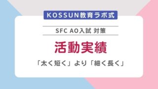 KOSSUN教育ラボは、慶應義塾大学SFC(湘南藤沢キャンパス)の総合型選抜(AO入試)に特化した対策を行っています。受験でお困りの方は、お気軽に無料個別相談会にお申し込みください。