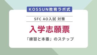 KOSSUN教育ラボは、慶應義塾大学SFC(湘南藤沢キャンパス)の総合型選抜(AO入試)に特化した対策を行っています。受験でお困りの方は、お気軽に無料個別相談会にお申し込みください。