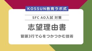 KOSSUN教育ラボは、慶應義塾大学SFC(湘南藤沢キャンパス)の総合型選抜(AO入試)に特化した対策を行っています。受験でお困りの方は、お気軽に無料個別相談会にお申し込みください。