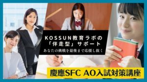KOSSUN教育ラボは、慶應義塾大学SFC(湘南藤沢キャンパス)の総合型選抜(AO入試)に特化した対策を行っています。受験でお困りの方は、お気軽に無料個別相談会にお申し込みください。