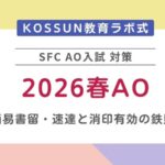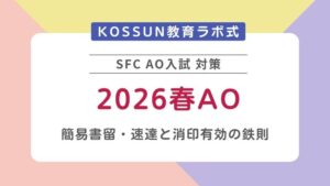 KOSSUN教育ラボは、慶應義塾大学SFC(湘南藤沢キャンパス)の総合型選抜(AO入試)に特化した対策を行っています。受験でお困りの方は、お気軽に無料個別相談会にお申し込みください。