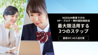 KOSSUN教育ラボは、慶應義塾大学SFC(湘南藤沢キャンパス)の総合型選抜(AO入試)に特化した対策を行っています。受験でお困りの方は、お気軽に無料個別相談会にお申し込みください。