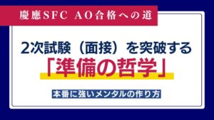 こんにちは!KOSSUN教育ラボ教務担当です。 SFCのAO入試において、1次選考を突破した先に待っているのが「2次選考(面接)」です。湘南藤沢キャンパスで行われるこの30分程度の対話は、合否を決める最終関門です 。 「 […]