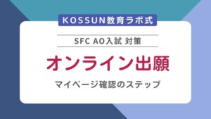 こんにちは!KOSSUN教育ラボ教務担当です。 慶應SFCのAO入試において、オンライン申請を済ませ、書類を郵便局から発送した後に最も大切な作業があります。それが、オンライン出願システム上の「マイページ」での受理状況確認 […]